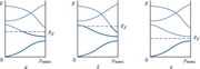 Схема заполнения энергетических зон металла (а), полуметалла (б) и диэлектрика или полупроводника (в).jpg
