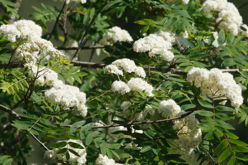Рябина обыкновенная (Sorbus aucuparia). Соцветия.
